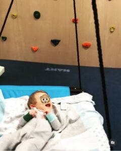 We changed how we held him to encourage him to stretch toward the right. I’d wait until he fell asleep in the carrier and gently turn his head, then hold it there while he slept, because if I let go, it would spring back. We approached him from the right, sat on his right, played on his right. Every nappy change became an opportunity for therapy.