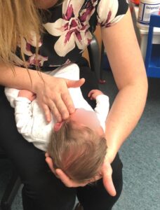 When I shared this with my physio, she showed us how to integrate the stretches into play- like during tummy time, carrier stretches, nappy changes, the Superman hold, using dangly toys, or on the fit ball.