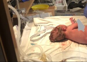 He was eventually delivered via vacuum moments before an emergency C-section would have been necessary. Due to the rush at the end and the stress of labour, G had twisted, and the vacuum was placed on the side of his head, resulting in a large hematoma.